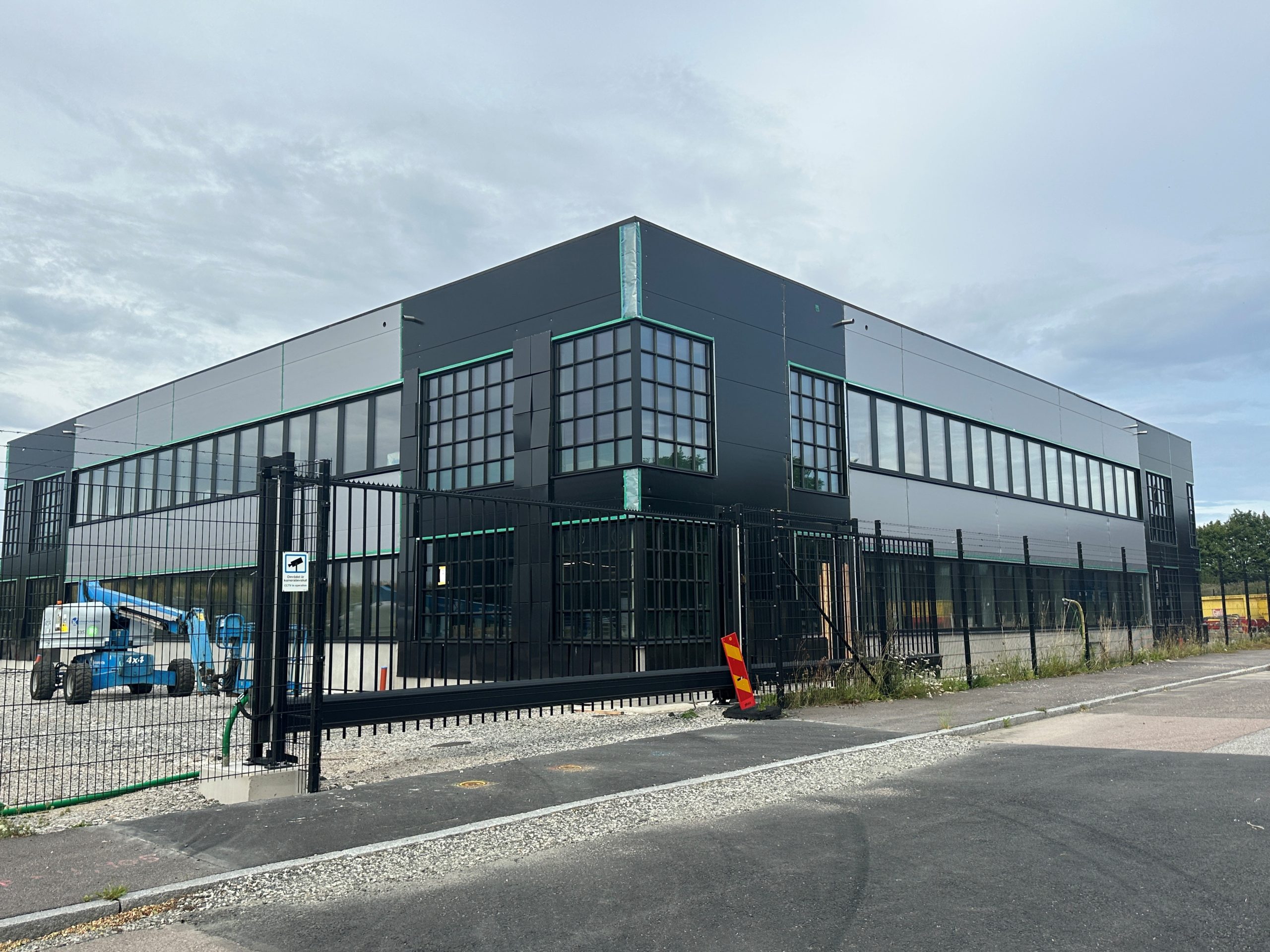 Under sommaren har det arbetats febrilt och nu är fasadpanelerna och fönstren på plats. En del arbete återstår innan huset får sitt färdiga utseende och innan anläggningsföretaget kan flytta in.